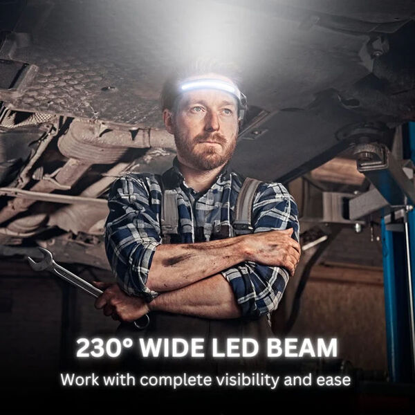 Osvetli ceo svoj radni prostor širokougaonim snopom od 230°. Ova čeona lampa pruža jaku i jasnu vidljivost u svim pravcima, što je čini idealnom i za unutrašnju i za spoljašnju upotrebu.